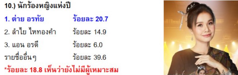 ขอบคุณข้อมูล : ลำไย ไหทองคำ , แอน อรดี Fanpage , Tai Orathai , อีสานโพล